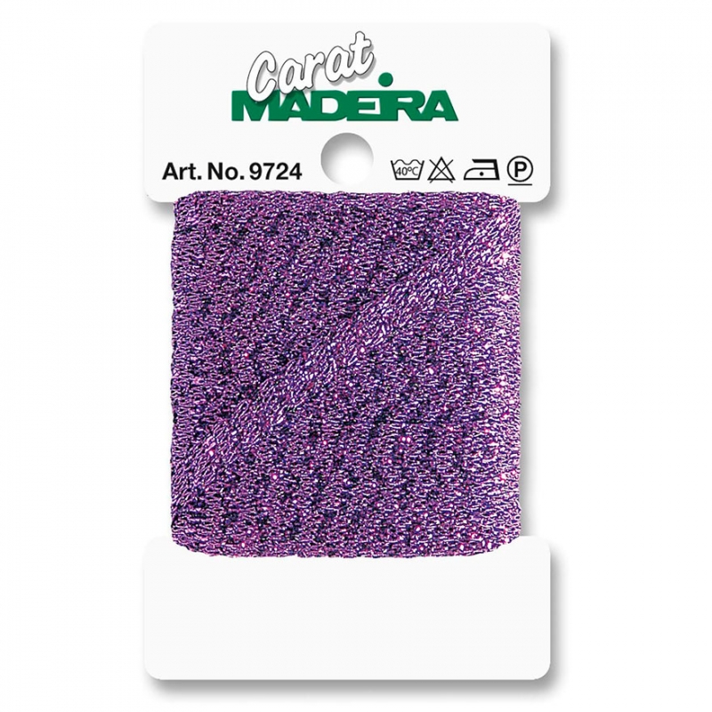 Декоративная металлизированная тесьма Madeira Carat, 5 метров. Предназначена для создания дополнительного декора как при шитье и вышивке, так и в интерьере. Тесьму можно наклеивать, вплетать, использовать при вязании крючком, плести в шнуры или же просто вручную или на машине нашивать на ткань при помощи прозрачной швейной нитки.